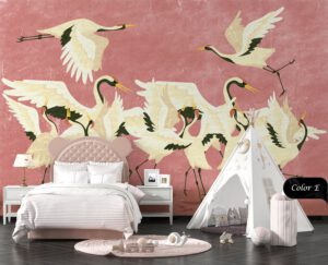 Kuşların uçuşunu betimleyen stilize edilmiş duvar kağıdı, yatak odası, salon ve ofis gibi mekanlara modern ve sanatsal bir dokunuş ekler. Kendinden yapışkanlı veya geleneksel malzeme seçenekleriyle sunulmaktadır. Yaşam alanınızı güzelleştiren bu eşsiz tasarım, doğal unsurları modern çizgilerle birleştirir.