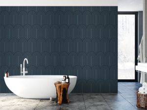Derin lacivert tonu ve zarif geometrik desenleriyle bu duvar kağıdı, banyonuza modern ve sofistike bir görünüm kazandırır. Neme dayanıklı yapısıyla özellikle banyo gibi alanlarda uzun ömürlü kullanım sunar. Kendinden yapışkanlı veya tutkallı olarak kolay uygulanabilir.