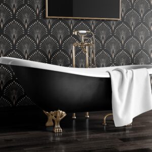 Art Deko Yelpaze Desenli Siyah Krem Duvar Kağıdı