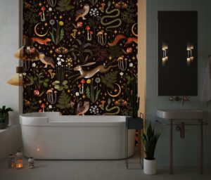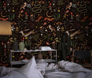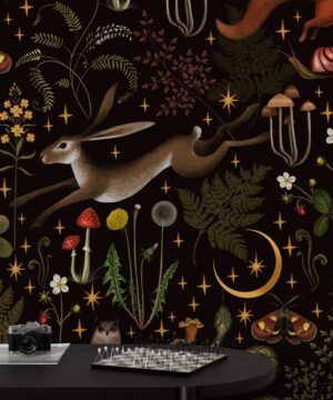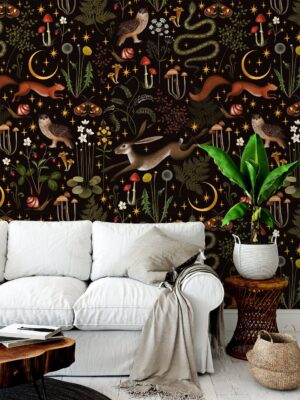 Bu doğa temalı masalsı duvar kağıdı, ormanın büyülü atmosferini iç mekanlara taşır. Tavşanlar, yılanlar, mantarlar ve çiçeklerle dolu illüstratif tasarımı sayesinde çocuk odaları, hikaye köşeleri ya da doğa konseptli mekanlar için eşsiz bir atmosfer oluşturur. Kendinden yapışkanlı ve geleneksel uygulama seçenekleriyle kolayca uygulanabilir.
