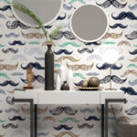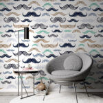 Renkli Bıyık Desenli Duvar Kağıdı