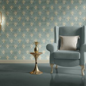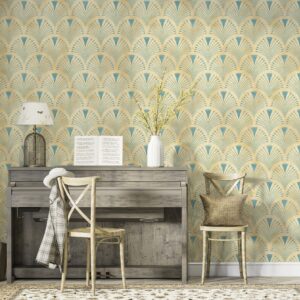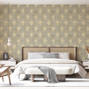 Art Deko Yelpaze Desenli Duvar Kağıdı – Bej ve Krem