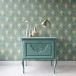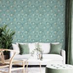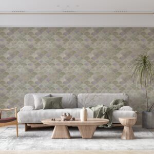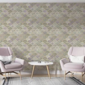 Art Deco Balık Pulu Desenli Gold Detaylı Duvar Kağıdı