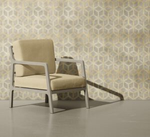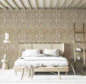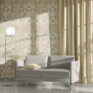 Üç boyutlu efektli geometrik desenleriyle bu modern duvar kağıdı, çalışma odası, ofis veya salon gibi alanlarınıza sofistike bir şıklık katıyor. Altın ve gri tonlarının zarif uyumu sayesinde her tarza kolayca uyum sağlar. Kendinden yapışkanlı veya geleneksel tutkal uygulamalı seçeneklerle sunulmaktadır.