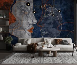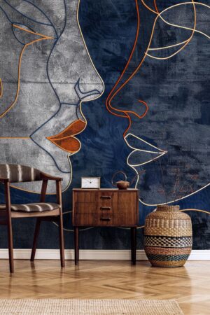 Mekanlarınıza çağdaş bir sanat galerisi havası katacak ‘Modern Soyut Çizgisel Yüz Figürlü’ duvar kağıdımızla tanışın. Bu etkileyici tasarım, derin lacivert ve zengin dokulu zeminler üzerinde, akıcı çizgilerle stilize edilmiş yüz figürlerini bir araya getiriyor. Turuncu ve gümüş tonlarındaki vurgular, tasarıma dinamizm ve sofistike bir parlaklık katar. Salonunuzda, yatak odanızda, çalışma alanınızda veya ofisinizde cesur bir ifade ve sanatsal bir odak noktası oluşturmak için mükemmeldir.