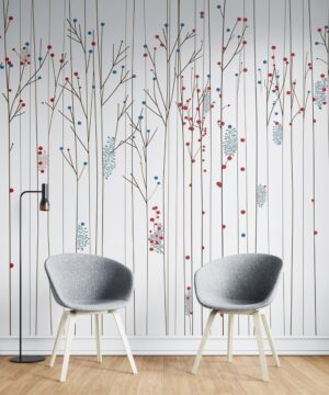Mekanlarınıza enerjik ve modern bir dokunuş katacak soyut dallı ve renkli noktalı duvar kağıdımızla tanışın. Beyaz zemin üzerine stilize edilmiş dallar ve canlı kırmızı ile mavi tonlarındaki noktalar, bu tasarıma dinamik ve eğlenceli bir hava katar. İskandinav ve minimalist dekorasyon anlayışıyla uyumlu bu desen, özellikle çalışma odaları, genç odaları veya modern yaşam alanları için idealdir. Duvarlarınıza özel olarak dilediğiniz ölçülerde üretilen bu duvar kağıdını, pratik uygulama sunan kendinden yapışkanlı, zengin bir doku katan dokulu veya lüks bir görünüm sağlayan deri desenli malzeme seçenekleriyle tercih edebilirsiniz. Tüm duvar kağıtlarımız, sağlığa zararsız, Greenguard Gold sertifikalı, kokusuz su bazlı reçine mürekkepler kullanılarak basılmaktadır. Türkiye’nin her yerine gönderimimizle bu çağdaş tasarıma kolayca sahip olabilirsiniz.