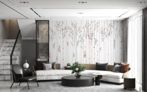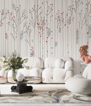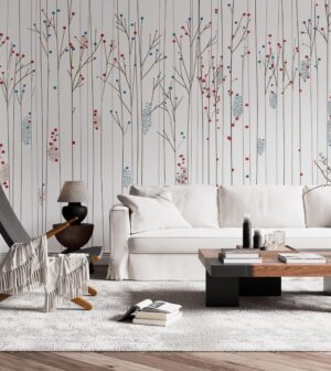Modern Soyut Dallı ve Renkli Noktalı Duvar Kağıdı – Beyaz Zemin