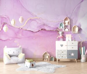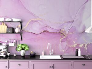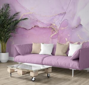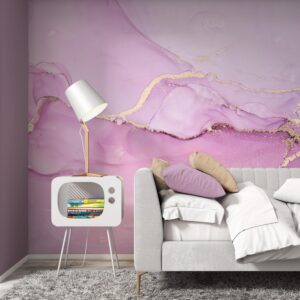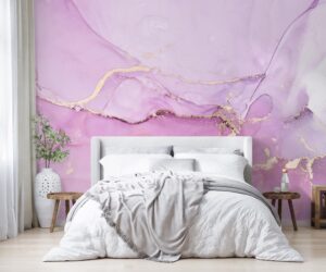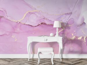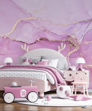 Mor Pembe Mermer Desenli Altın Damarlı Duvar Kağıdı