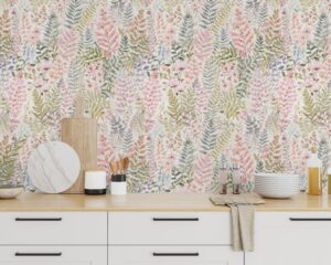 Evinize doğanın ferahlatıcı dokunuşunu ve pastel renklerin huzurunu getirin. Bu zarif botanik desenli duvar kağıdı, çeşitli yapraklar ve minik çiçeklerden oluşan yoğun ve canlı deseniyle mekanlarınıza doğal bir zarafet katar. Pembe, yeşil, mercan ve hafif mavimsi gri tonlarındaki yumuşak pastel renk paleti, aydınlık, sakin ve dinlendirici bir atmosfer yaratır. Suluboya tekniğini andıran ince detayları ve sanatsal çizimleriyle duvarlarınızda modern ve sofistike bir etki bırakır.