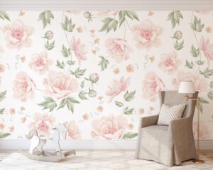 Bu zarif pastel çiçek desenli duvar kağıdı, özellikle bebek odaları ve kız çocuk odaları için sıcak ve huzurlu bir ortam yaratır. Büyük ölçekli pembe çiçekler ve yeşil yapraklarla bezenmiş bu tasarım, romantik ve klasik dekorasyon tarzını sevenler için idealdir. Hem kendinden yapışkanlı hem de tutkal ile uygulanan geleneksel versiyonu mevcuttur. Bebek odası, oyun odası veya yumuşak renklerin hakim olduğu alanlar için mükemmel bir seçimdir.