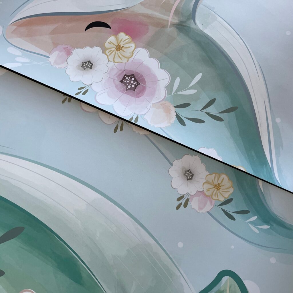 Bu duvar kağıdının güzelliğini anlatacak kelime yok. Büyüleyici ve yeni kızımız için sevgi ve neşe dolu bir deniz altı dünyası yarattı.