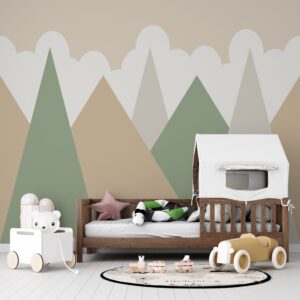 Çocuk odalarına modern bir dokunuş katacak pastel tonlarında geometrik dağlar duvar kağıdı ile odanızı şık ve minimalist bir şekilde dekore edin. Kendinden yapışkanlı veya geleneksel tutkal ile uygulanabilir. Yumuşak renkler ve sade tasarımıyla her odaya uyum sağlar.