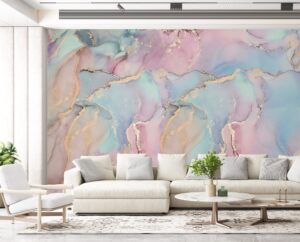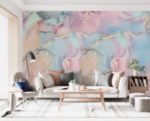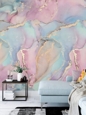 Pastel Renk Akışlı Altın Detaylı Soyut Duvar Kağıdı