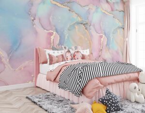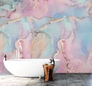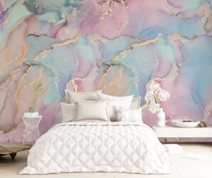 Mavi ve Pembe Mermer Altın Abstrakt Duvar Kağıdı