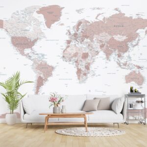 Pastel Renkli Detaylı Dünya Haritası Duvar Kağıdı