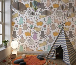 Pastel Renkli Sevimli Kedi Desenli Duvar Kağıdı için 3 değerlendirme