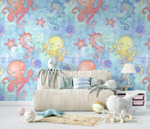 Ahtapotlar, deniz atları, deniz yıldızları ve kabuklu deniz canlıları gibi sevimli su altı karakterleriyle tasarlanmış bu pastel renkli duvar kağıdı, bebek ve çocuk odalarına eğlenceli, canlı ve huzurlu bir atmosfer katıyor. Yumuşak renk geçişleri ve detaylı çizimleriyle ferahlatıcı bir ortam yaratır. Ürün, hem kendinden yapışkanlı hem de geleneksel tutkal ile uygulanabilir seçeneklerde sunulmaktadır. Bebek odaları, çocuk odaları ve oyun alanları için mükemmel bir tercihtir.
