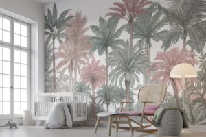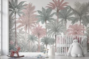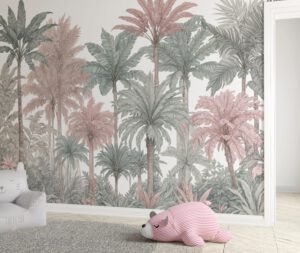 Yumuşak pastel tonlarında tasarlanan bu tropikal palmiye ağaçları duvar kağıdı, doğanın huzur veren atmosferini mekanlarınıza taşır. Pembe, yeşil ve krem renkleriyle zarif ve ferah bir görünüm sunar.