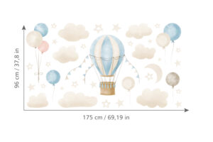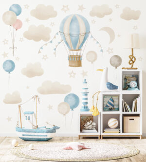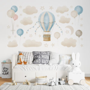 Bu eşsiz tasarımla çocuğunuzun odasına sakin ve ilham verici bir hava katın. Uçan balonların özgürlüğü, yıldızların parıltısı ve bulutların yumuşaklığıyla dolu bu set, onların hayal gücünü besleyecek ve odalarını en sevdikleri yer haline getirecektir.