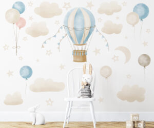 Pastel Uçan Balon ve Yıldızlar Duvar Sticker