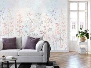 Çiçekli İnce Dal Desenli Duvar Kağıdı