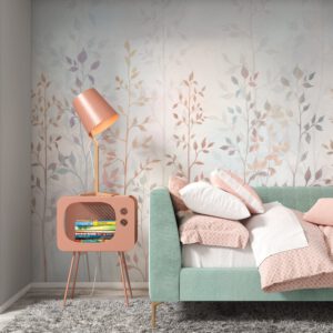 Pastel tonlarda yapraklar ve doğa unsurlarından oluşan bu duvar kağıdı, odanıza sakin ve huzurlu bir atmosfer katacaktır. Yumuşak renk tonları ile ev dekorasyonunuza modern bir dokunuş ekleyin. Kendinden yapışkanlı ya da geleneksel tutkal ile uygulama seçenekleri sunan bu tasarım, oturma odası, yatak odası gibi farklı alanlarda kullanılabilir.