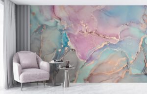 Pembe ve Mavi Abstrakt Mermer Duvar Kağıdı
