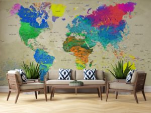 Canlı renklerle tasarlanmış bu suluboya efektli dünya haritası duvar kağıdı, mekanlarınıza enerjik ve sanatsal bir atmosfer kazandırır. Kendinden yapışkanlı vinil veya tutkallı geleneksel duvar kağıdı seçenekleri ile sunulur. Salonlar, ofisler, çalışma odaları, genç odaları, kütüphaneler ve yaratıcı alanlar için mükemmel bir tercihtir. Yüksek çözünürlüklü baskı kalitesi sayesinde detaylar net ve canlıdır. İsteğe göre özel ölçü seçenekleri de mevcuttur.