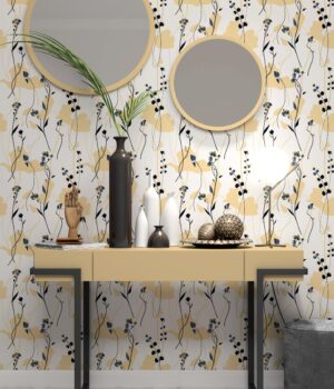 Sade çizgilerle tasarlanmış bu modern çiçek desenli duvar kağıdı, beyaz zemin üzerindeki açık sarı ve ince koyu tonlarla mekanlara ferah ve dengeli bir görünüm kazandırır. Gösterişten uzak ama dikkat çekici olan bu tasarım, hem klasik hem çağdaş dekorasyonlarla uyumludur. Kendinden yapışkanlı ve geleneksel tutkal uygulamalı seçenekleri mevcuttur. Antre, mutfak, çalışma odası ve yaratıcı alanlar için uygundur.