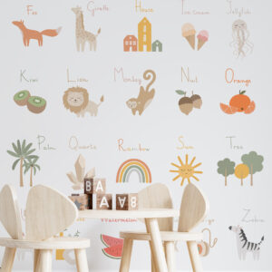 Çocuğunuzun odasını büyülü bir safari macerasına dönüştürün! Bu özel tasarlanmış duvar sticker seti, fil, aslan, zürafa, meerkat ve renkli papağan figürleriyle birlikte egzotik palmiye ağacı ve nostaljik sıcak hava balonları içermektedir.
