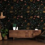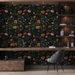 Karanlık Renkli Çiçek Desenli Duvar Kağıdı