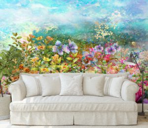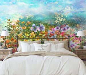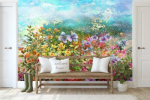 Baharın renkli enerjisini sanatsal bir dokunuşla yansıtan bu duvar kağıdı, zengin çiçek detayları ve gökyüzü geçişli arka planıyla yaşam alanlarına derinlik ve canlılık katar. Yağlı boya görünümüyle öne çıkan bu tasarım, kendinden yapışkanlı veya geleneksel tutkal uygulamalı seçeneklerle sunulmaktadır. Özellikle salon, okuma köşeleri, butik dekorasyonlar veya yaratıcı alanlar için harika bir tercihtir.