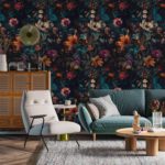 Sanatsal Kuş ve Çiçek Desenli Duvar Kağıdı