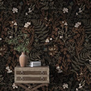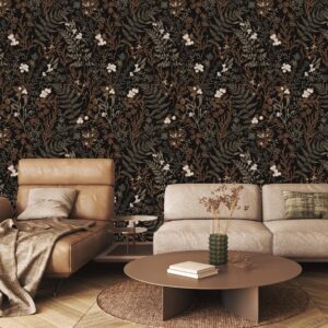 Koyu Tonlarda Botanik Yaprak Desenli Duvar Kağıdı