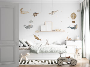 Bu büyüleyici tasarımla çocuğunuzun odasına sakin, ilham verici ve neşeli bir hava katın. Parti şapkalı sevimli deniz canlıları ve gökyüzü unsurlarıyla dolu bu set, onların hayal gücünü besleyecek, odalarını en sevdikleri keşif ve rüya alanına dönüştürecektir.