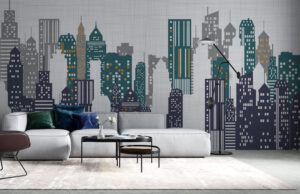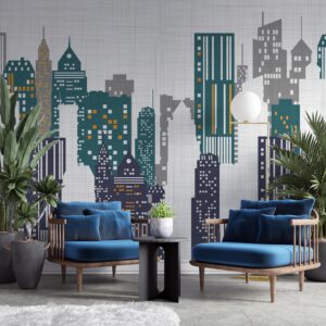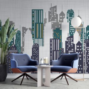 Bu şehir manzarası duvar kağıdı, modern binaların yüksekliğiyle odalarınıza çağdaş bir dokunuş katacak. Kendinden yapışkanlı veya geleneksel malzeme seçenekleriyle oturma odası ve salon gibi alanlarda kullanılabilir. Şehir yaşamının dinamiklerini evinize taşıyın.