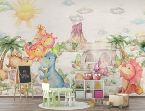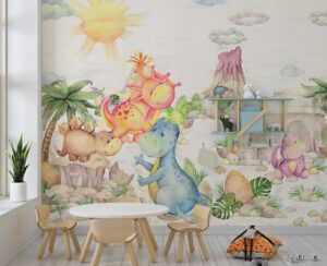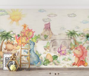 Sevimli Dinozorlar Temalı Duvar Kağıdı