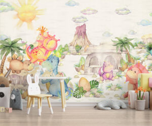 Renkli dinozorlar, volkanlar ve tropikal bitkilerle tasarlanmış bu eğlenceli duvar kağıdı, çocuk odalarına ve oyun alanlarına neşeli bir atmosfer katıyor. Pastel tonlardaki dinozor illüstrasyonları ile renkli ve eğlenceli bir ortam yaratılır. Ürün hem kendinden yapışkanlı hem de geleneksel tutkal ile uygulanabilir seçeneklerde sunulmaktadır. Çocuk odaları ve oyun alanları için mükemmel bir tercihtir.