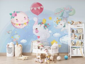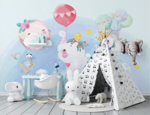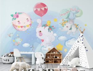 Sevimli fil ve balonlar ile tasarlanmış bu eğlenceli duvar kağıdı, çocuk odalarına neşeli ve renkli bir atmosfer katıyor. Pastel tonlarında uçuşan bulutlar ve yıldızlar, odalarda sakin ve mutlu bir ortam yaratıyor. Hem kendinden yapışkanlı hem de geleneksel tutkal ile uygulanabilir seçeneklerde sunulmaktadır. Çocuk odaları ve oyun alanları için harika bir tercihtir.