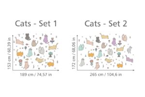 Çocuğunuzun odasını en sevimli ve en oyuncu kediciklerle doldurmaya ne dersiniz? Bu neşeli duvar sticker seti ile duvarları bir oyun alanına çevirin!\n\nFarklı renklerde ve birbirinden şirin pozlardaki kediler, minik balıklar, çiçekler ve ağaçlardan oluşan bu set, çocuğunuzun hayal gücünü harekete geçirecek ve odasına eğlenceli bir karakter katacaktır.