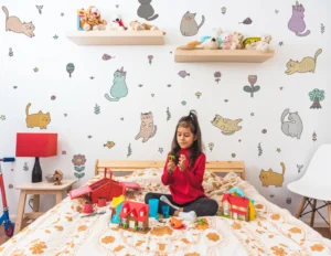 Çocuğunuzun odasına mutluluk ve eğlence katmak için bu sevimli kedi sticker setini hemen keşfedin!