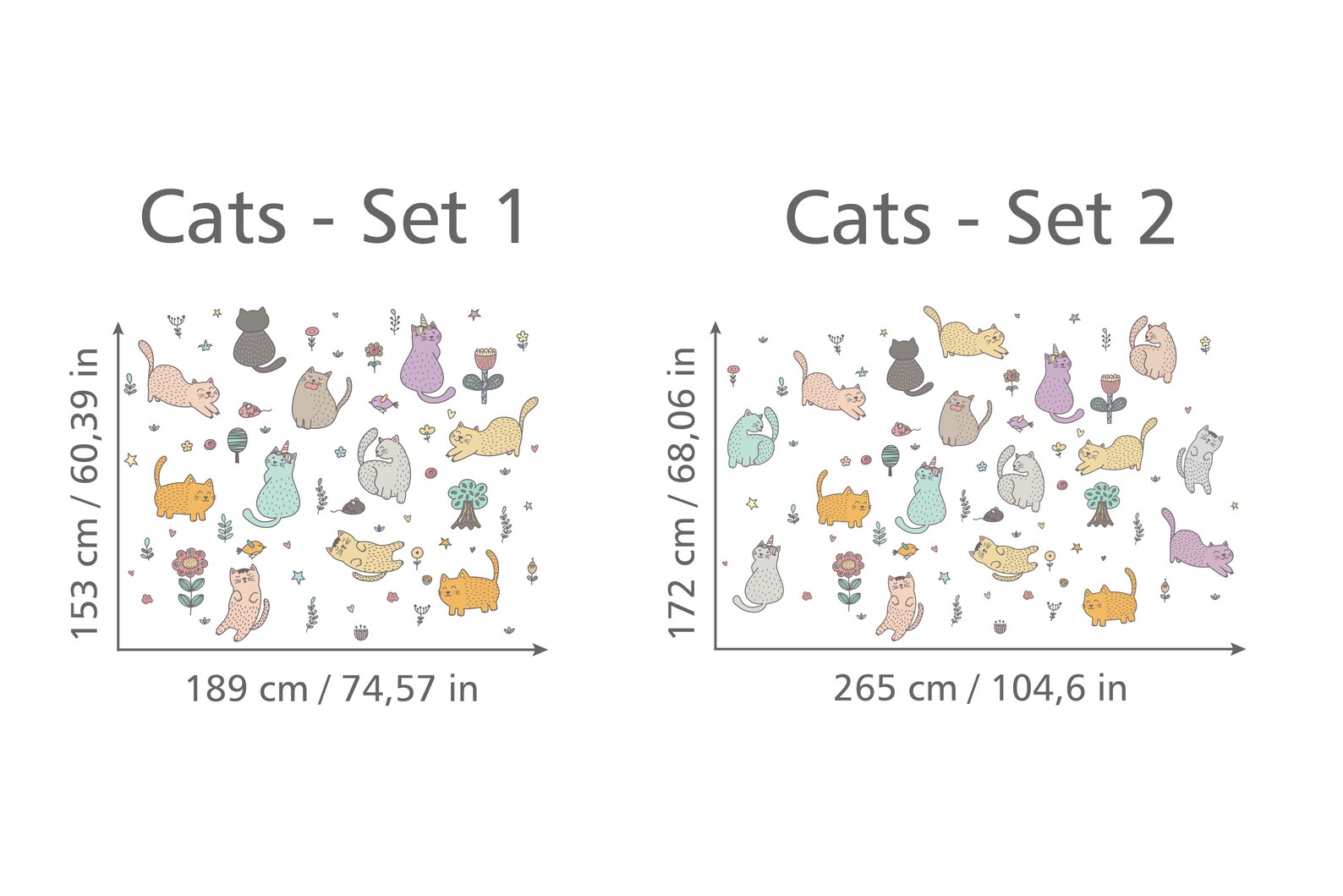 Çocuğunuzun odasını en sevimli ve en oyuncu kediciklerle doldurmaya ne dersiniz? Bu neşeli duvar sticker seti ile duvarları bir oyun alanına çevirin!\n\nFarklı renklerde ve birbirinden şirin pozlardaki kediler, minik balıklar, çiçekler ve ağaçlardan oluşan bu set, çocuğunuzun hayal gücünü harekete geçirecek ve odasına eğlenceli bir karakter katacaktır.