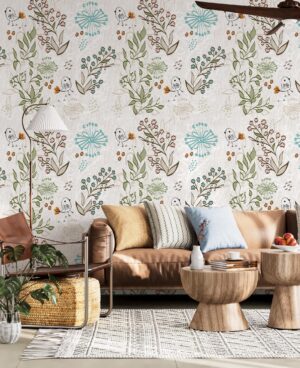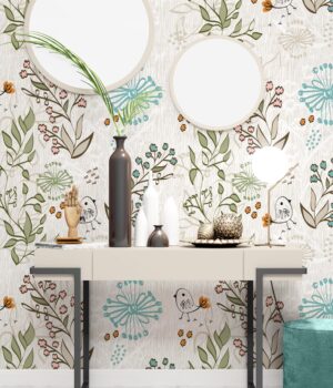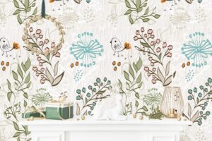 Evinize İskandinav tasarımının sadeliğini ve neşesini taşıyın! Bu zarif duvar kağıdı, açık renk zemin üzerine stilize edilmiş sevimli kuş figürleri, narin dallar ve modern çiçek motifleriyle dekore edilmiştir. Pastel tonlardaki turkuaz, yeşil ve pembe dokunuşlarla mekanınıza ferah, aydınlık ve pozitif bir enerji katar. Çocuk odaları, bebek odaları veya yaşam alanlarına modern ve sıcak bir hava katmak isteyenler için idealdir.