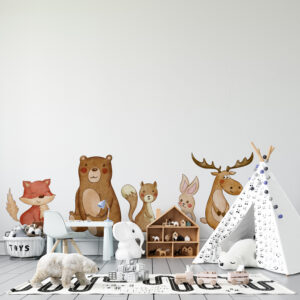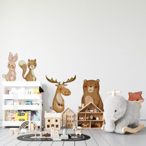 Bebek odaları, çocuk odaları ve oyun alanları için tasarlanan bu Orman Hayvanları seti, çocukların doğa ve hayvan sevgisini artırırken, odalarına da huzurlu ve eğlenceli bir karakter kazandıracak.
