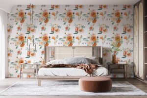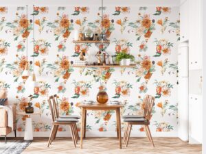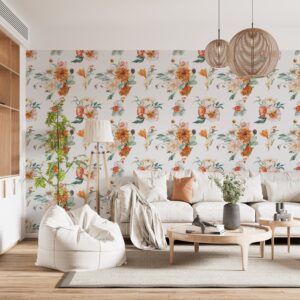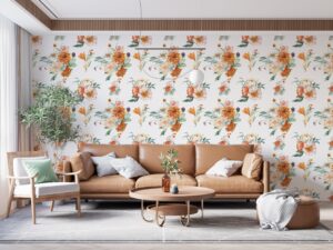 Evinize samimi bir sıcaklık ve nostaljik bir şıklık katacak, suluboya tekniğiyle özenle hazırlanmış sıcak tonlu çiçek buketleri desenli duvar kağıdımızla tanışın. Turuncu, şeftali ve yumuşak yeşil tonlarının hakim olduğu bu neşeli ve vintage esintili tasarım, mekanlarınıza davetkar, huzurlu ve pozitif bir atmosfer getirir. Oturma odası, yatak odası veya misafir odanızda keyifli ve sıcak bir ortam yaratmak için idealdir. Tamamen duvar ölçülerinize göre özel olarak üretilen bu duvar kağıdını; pratik kendinden yapışkanlı, zengin dokulu veya lüks deri desenli malzeme seçenekleriyle tercih edebilirsiniz. Baskılarımızda Greenguard Gold sertifikalı, su bazlı ve kokusuz reçine mürekkepler kullanılmaktadır.