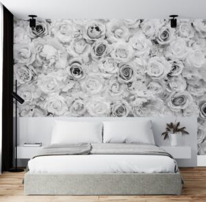 Siyah Beyaz Gül Desenli 3D Duvar Kağıdı