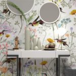 Uçan Kuş ve Çiçek Desenli Duvar Kağıdı