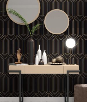 Siyah Zemin Üzerine Altın Art Deco Duvar Kağıdı