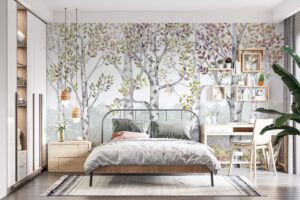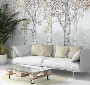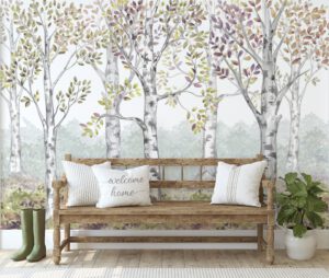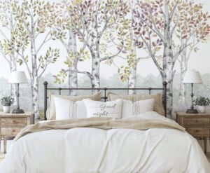 Bu sonbahar ağaçları ve renkli yapraklar desenli duvar kağıdı, yatak odası veya salon gibi iç mekanlarda doğayla uyumlu bir atmosfer yaratacaktır. Yumuşak tonlar ve doğal görünümlerle duvarlarınıza huzur katacak. Kendinden yapışkanlı ya da geleneksel tutkal ile uygulanabilir.
