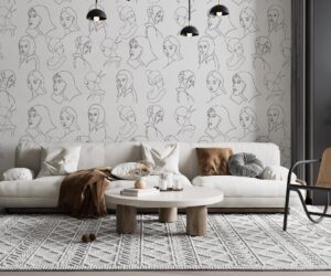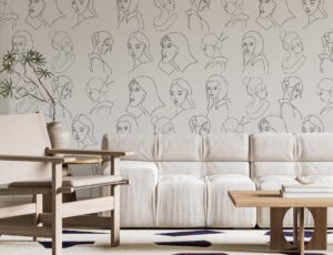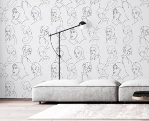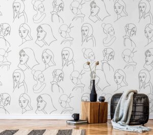 Soyut Çizgisel Kadın Yüzleri Desenli Duvar Kağıdı